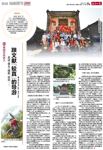 通过实地走访,张雨才知道海南很多地方尤其是古村落都记录着不一样的乡土历史,也帮助他对海南的人文历史有着更深的认识,而基于各种海南方志记载和实地考证后颠覆性的认知,也让他在导游讲解服务中令游客折服。