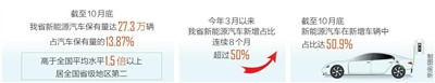 同时,今年3月以来,我省新能源汽车新增占比连续8个月超过50%,截至10月底,我省新能源汽车在新增车辆中占比达50.9%,超过年度新增占比目标10.9个百分点。