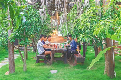 三亚水蛟村水蛟小院,游客围坐在一起聊天。 本版图片均由本报记者 王程龙 摄