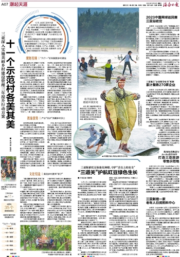 三亚市农业农村局副局长何丽萍介绍,3年来,该市按照《方案》,优化农村空间布局,改善农村人居环境,加快补齐农村公共服务和基础设施短板,促进农村产业发展,提高农村居民收入,加强村级党组织建设,引导村民自治共管,塑造美丽乡村新形象。