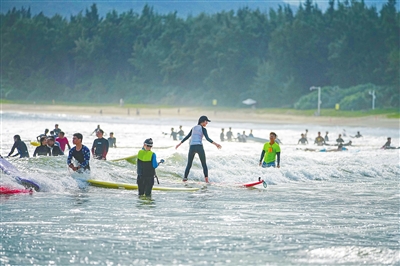 近日,第二届后海冲浪文化周活动在三亚后海举办。本次活动除了技能大比武赛事,还包含变装冲浪赛、冲浪沙龙、冲浪文化展、环保活动等,吸引众多冲浪爱好者以及市民游客前来体验、感受后海冲浪文化。