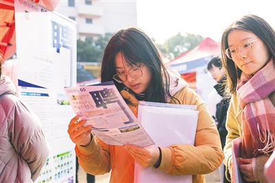 12月1日,在湖南师范大学,求职学生在了解招聘信息。新华社发