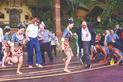 在2023年(第二十四届)海南国际旅游岛欢乐节期间,12月3日至5日,来自约旦、塞舌尔、希腊等19个国家的30余名驻华外交官,走进海南槟榔谷黎苗文化旅游区,感受独具特色的海南民族风情。