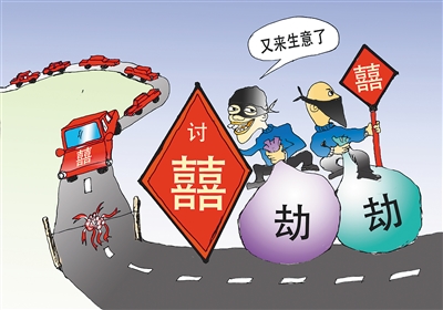 “讨喜”是中国婚俗文化的一部分,在结婚迎亲的路上要点喜烟喜糖沾沾“喜气”本无可厚非,但倘若索要太多太过火,就变成了“趁喜打劫”,给办喜事的人造成了极大困扰。类似于开一把锁要一条烟的“趁喜打劫”行为必须坚决遏止,同时要引导村民正确认识习俗,逐步摒弃陋习,改变不文明的讨喜行为,让“祝福”和“讨喜”的过程更加文明。
