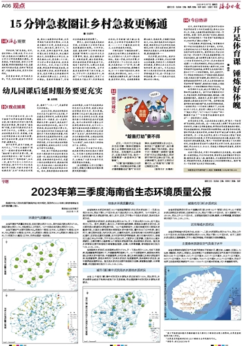 根据《中华人民共和国环境保护法》有关规定,现发布《2023年第三季度海南省生态环境质量公报》。海南省生态环境厅