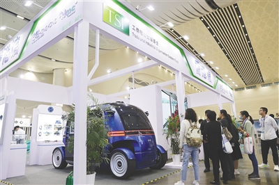 2023世界新能源汽车大会技术展上,香港馆的无人驾驶电车展出。