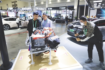 2023世界新能源汽车大会技术展上,氢能源机器设备受关注。本组图片均由本报记者 邱肖帅 摄