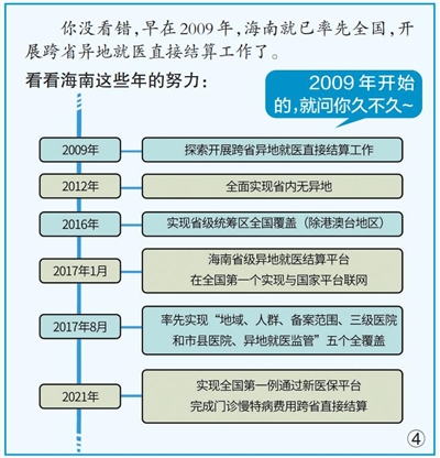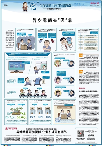 医疗卫生保障关乎人民健康。海南从结算覆盖面、备案流程、备案手续等方面,不断优化异地就医结算工作,提升医疗领域信息技术能力和公共服务水平,既保障了广大群众切身利益,也进一步解决了企业落地海南共享机遇、外来人才干事创业的后顾之忧。