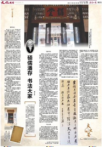潘存不但博学,而且为人耿直。时人冯骥声《挽潘孺初先生联》有云:“理学传陆象山,经术师顾亭林,屈指数岭海贤豪,灵光岿然推此老;议论若陈同甫,气节似鲁仲连,何意遇龙蛇岁厄,康成殁后又斯人。”