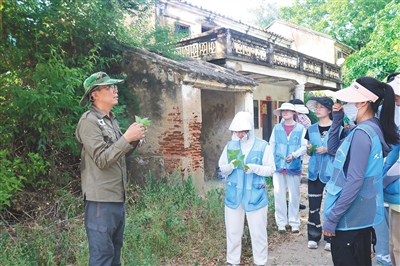 海南医学院学生暑期在户外辨识黎药。图片由校方提供