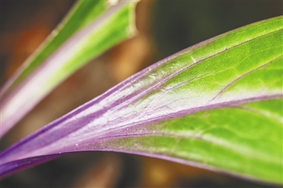 海南特有种闭花耳草的叶片呈现紫色和绿色渐变。