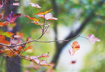 天气渐冷,枫香树的叶片色彩越发艳丽。