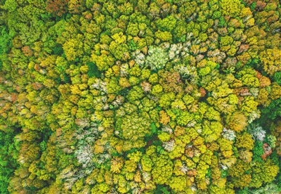 12月7日,俯瞰海南热带雨林国家公园五指山片区,树木五彩缤纷。