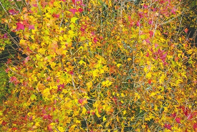 当然,叶绿体中除了叶绿素,还含有叶黄素和胡萝卜素。当秋意渐浓,水分、温度、光照等条件都发生巨大变化时,植物的叶绿素逐渐降解,原本处于弱势的类胡萝卜素就显现出来了,它们呈现出的颜色主要从黄到橙。随着时间的推移,类胡萝卜素又容易被一种叫单宁酸的物质氧化破坏,叶片就变成了棕色,呈现出枯萎、衰败的一面,这也意味着一片叶子将迎来生命的终点。