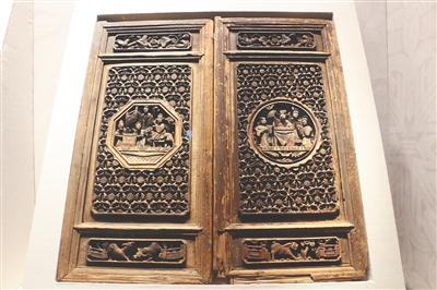 此次徽州古建筑文化展展出多件民居建筑构件,花卉草虫纹砖雕、凤戏牡丹纹砖雕、瓜果纹画卷形砖雕等各类砖雕造型优美,远山近石、江河溪流、青松翠竹、花鸟鱼虫等,都被雕刻于房梁、门窗之上。人在屋内,亦可观山川草木、日月星辰、鱼虾鸟兽,自然之趣无需多言。