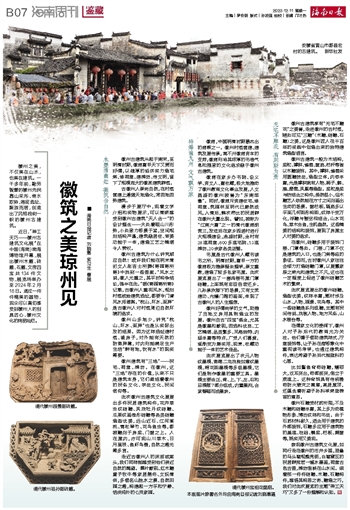 ■ 海南日报记者 刘晓惠 实习生 曹展徽州之美,不仅美在山水,也美在建筑。一千多年前,勤劳智慧的徽州先民靠山采形、傍水取势,周密选址、聚族而居,创造出了风格独树一帜的徽州古建筑。
