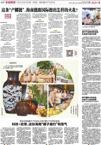 而作为中国“椰子之乡”的文昌市,椰子种植面积22.88万亩,占全省种植面积的40.25%。“中国进口椰子原料约80%的初加工在文昌。在深加工方面,我们着力打造了以东郊镇为中心,龙楼镇、东路镇为重点的椰子产业发展布局,建立了三个农副产品加工基地。”文昌市市长刘冲介绍,预计2023年文昌椰子相关产业产值将突破40亿元。