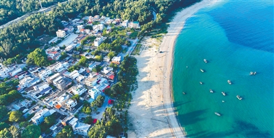 近日,航拍昌江黎族自治县海尾镇沙渔塘社区,滨海美景加上相关影视作品、综艺节目带来的知名度,让越来越多游客前来“打卡”。
