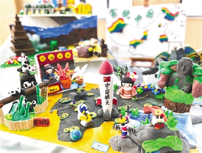 创意十足的学生黏土作品。 本栏图片由本报记者 侯赛 摄