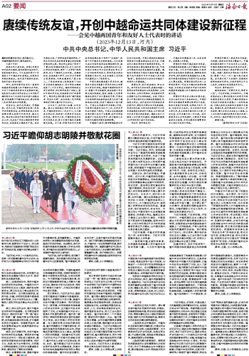 二是把务实合作推进好。中越均处在改革发展的关键阶段,开展互利合作既有先天优势,也是现实需要。双方要落实好这次访问成果,加强互联互通、产业链供应链、绿色经济等领域合作,提高两国民众的获得感。