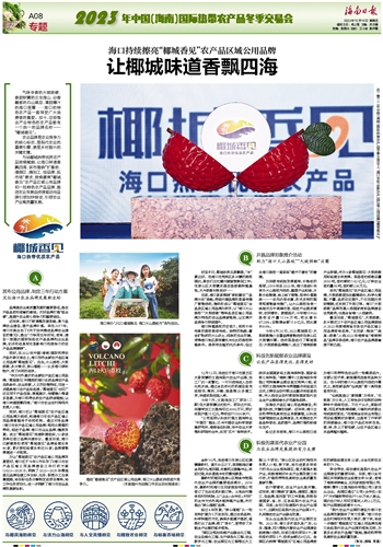 当前,海口紧紧围绕“商标富农”“品牌兴农”战略,持续开展品牌形象宣传推广营销活动,推动形成以“椰城香见”全品类区域公用品牌为抓手,以“海口火山荔枝”“大坡胡椒”等单品类区域公用品牌为特色的农业品牌新格局,让王牌产品竞争力持续提升。