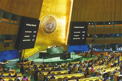 第78届联合国大会主席丹尼斯·弗朗西斯指出,世界正目睹“平民遭屠杀、人道主义系统崩溃以及国际法和国际人道主义法被极度不尊重”。巴勒斯坦常驻联合国观察员里亚德·曼苏尔说,联大发出“强有力信息”,“今天具有历史意义”。