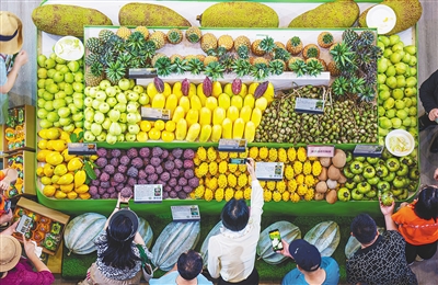 ③ 冬交会琼海馆,参展观众选购水果。