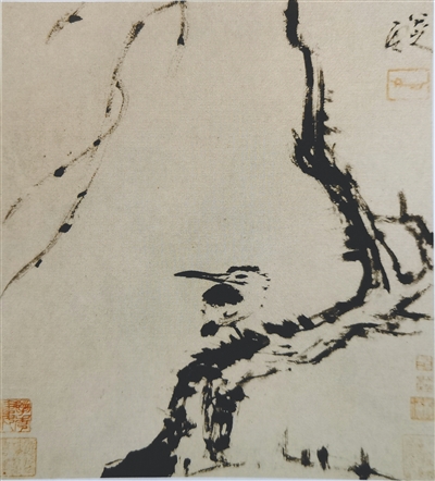 他画的鸟,有些显得很倔强,即使落墨不多,也表现出鸟儿振羽,使人有不可一触,触之即飞的感觉。有些蜷足缩颈,一副既受欺又不屈的情态,在构图、笔墨上更加简洁,呈现出炉火纯青的艺术境界。