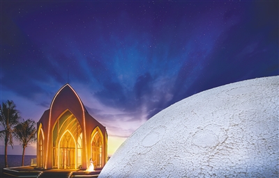 “别看它小,实际投资200万元。”莺歌海礼堂主人冯罕说,结合莺歌海夕阳美景,采用后现代风格设计,用定制的不同形状钢板搭建,见到它的人都会留下深刻印象。