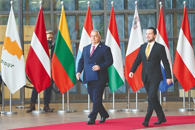 12月14日,在比利时布鲁塞尔,匈牙利总理欧尔班抵达欧盟峰会会场。