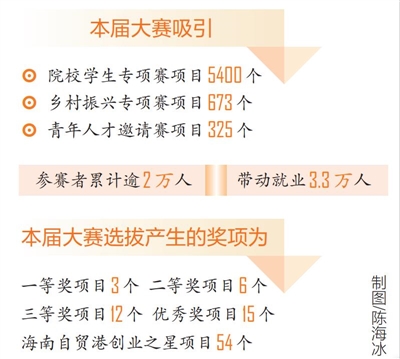 大赛呈现三大特点:一是点亮青春创业梦想。面向在校大学生,24所院校组织开展院校学生专项赛,为大学生创新创业提供全方位支持。二是帮助乡村振兴创业项目走进大众视野。过半数的参赛项目拥有专利技术,农业三产融合成效初显。三是助推各领域人才科研成果走向市场。过半数的科研项目已转化落地,项目涵盖南繁科技、深海科技、生物医药、数字经济、人工智能等高精尖产业领域。