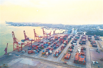 航拍位于海南自贸港重点园区洋浦经济开发区的洋浦港。 新华社记者 蒲晓旭 摄
