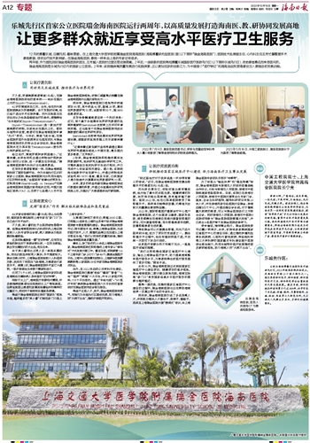 上海交通大学医学院附属瑞金海南医院。本版图片均由院方提供