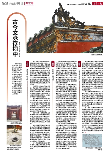 ■ 海南日报记者 张期望祠堂不仅是追思先贤的场所,也沉淀着厚重的历史文化。海南城乡大大小小的祠堂里,保存着许多珍贵的文化遗存,它们或是一块年代久远的匾额,或是一副彰显优良家风的楹联,或是一张雕工精细的供案或八仙桌。这些穿越时空的老物件沉淀着历史故事,闪耀着人文光辉。