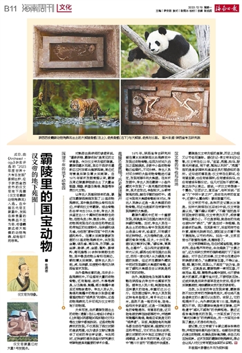 让考古人员感到惊奇的是,最近在霸陵西南侧发现了23座动物殉葬坑,其中兽类动物头骨均在东边,并朝向汉文帝霸陵。结合骨骼形态学与古DNA分析,考古人员共鉴定出11个属种的珍稀野生动物,包括鸟类2种、兽类9种。这些动物既有现在仍生活在热带或亚热带地区的印度野牛、马来貘和绿孔雀,也包括“秦岭四宝”中的大熊猫和羚牛。在薄太后南陵最新发掘的55座动物殉葬坑中,共发现金雕、绿孔雀、褐马鸡、丹顶鹤、金丝猴、猕猴、虎、金猫、鬣羚、鹅喉羚、梅花鹿等30余种珍稀野生动物,其中兽类动物头骨均在南边,朝向薄太后南陵。据考古人员介绍,虎、马来貘、印度野牛等均为陕西省首次发现。