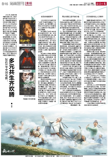 总体而言,2023年的中国电影展示了异彩纷呈的多元风格。在今年的银幕上,成名已久的著名导演、熟谙商业类型创作的中坚派以及来自各个华语社区的导演的作品接续上映,凸显了多元共生的华语电影新生态。随着中国电影这块蛋糕的做大做强,越来越多的创意和创新被展示了出来,彰显了中国电影人的创作实力,推动了中国电影产业的转型升级。