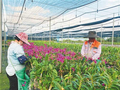 ⑤东方市感城镇宝东村兰花种植基地,村民在管护兰花。本报记者 张文君 摄