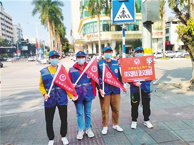 在琼海,像杨娇这样的交通劝导志愿者有上千名。红娘子玫瑰连爱心协会会长莫丹介绍,“文明斑马文明行”文明交通劝导志愿服务项目于2020年8月启动,由琼海市精神文明促进中心指导,红娘子玫瑰连爱心协会负责组织招募志愿者实施,截至目前已有超千名志愿者注册,累计参与志愿者超5.6万人(次),疏导交通拥堵问题74次,劝导违规行为5500余次,获评为我省学雷锋志愿服务先进典型。