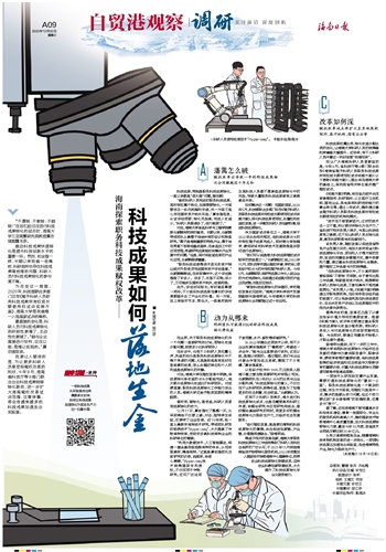 从束之高阁到落地生金,随着海南科技体制机制改革的进一步深化,一项项科技成果正加速走出实验室,走进海南特色产业,转化为现实生产力。
