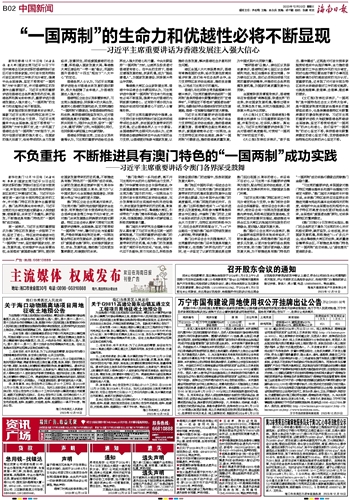 《大公报》《文汇报》《香港商报》等香港主流媒体19日在重要版面进行报道,并配发社论、社评深入解析。舆论认为,习近平主席的重要讲话体现了中央对香港的高度重视,对贯彻“一国两制”方针的坚定不移。