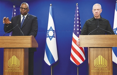12月18日,美国国防部长奥斯汀(左)和以色列国防部长加兰特在以色列特拉维夫出席联合记者会。