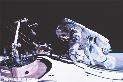 12月21日在北京航天飞行控制中心拍摄的神舟十七号航天员唐胜杰开展舱外操作的画面。新华社发(韩启扬摄)