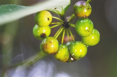 虽近来连日低温,但海南热带雨林国家公园仍和银装素裹的北方景象大不相同。不少雨林植物纷纷结果,色彩斑斓的果实挂上枝头,更显雨林生机勃勃。