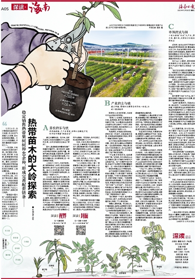 “产业堵点客观存在,但前景依然广阔。”近年来,作为当地龙头企业,海垦龙江致力于推动大岭苗木产业转型升级。在广泛调研中他们发现,我省对于优质苗木的需求量越来越大。这一结论在苗农的重要客户——果农和种植企业口中得到证实。