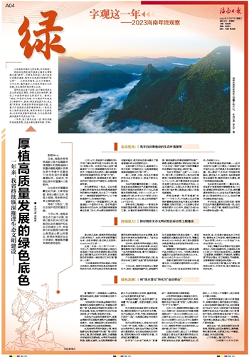 纵观海南热带雨林国家公园、清洁能源岛和清洁能源汽车推广等6项标志性工程,既引领能源、建筑、交通等重点领域绿色发展转型,也带动风电装备制造、装配式建筑、全生物降解塑料等新兴产业在海南从无到有、蓬勃发展,让产业发展的底色更“绿”。