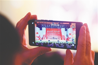 12月25日晚,“奋进新时代 文昌有力量”2022-2023年文昌市道德模范暨“感动文昌”十大人物颁奖典礼现场,观众用手机记录。(本版图片除署名外均由文昌市融媒体中心提供)