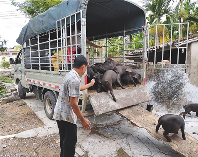 定安县烟草专卖局在北斗村发展黑猪养殖产业。 本版图片均由海南烟草提供