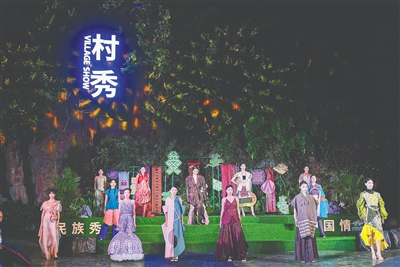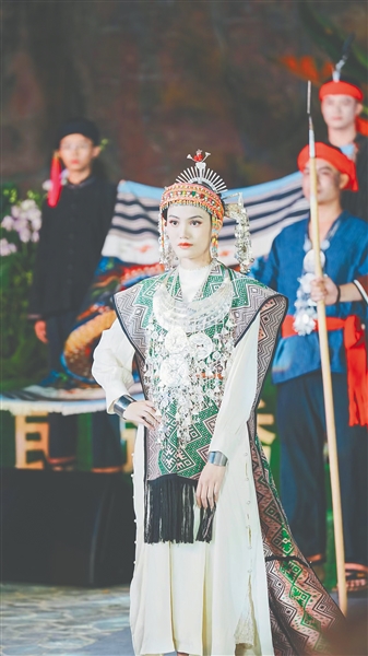 五指山民族时装“村秀”模特展示“黎锦女神”创意服饰。