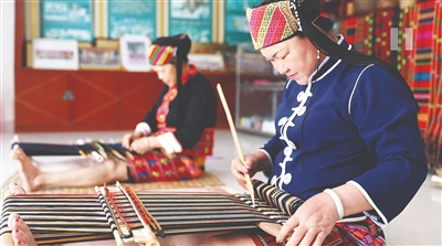 五指山市黎锦技艺国家级代表性传承人刘香兰,在非遗工坊带动农村妇女织造黎锦增加收入,助力乡村振兴。 本版图片均由五指山市委宣传部供图