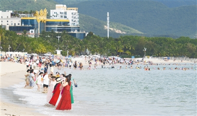 日前,游客在三亚大东海景区游玩。入冬以来,海南三亚旅游市场持续升温。据悉,今年三亚于11月中旬开始迎来旅游旺季,12月17日至23日,旅游饭店平均入住率较去年同期增加23.6个百分点,预计市场热度将延续至春节。新华社记者 杨冠宇 摄